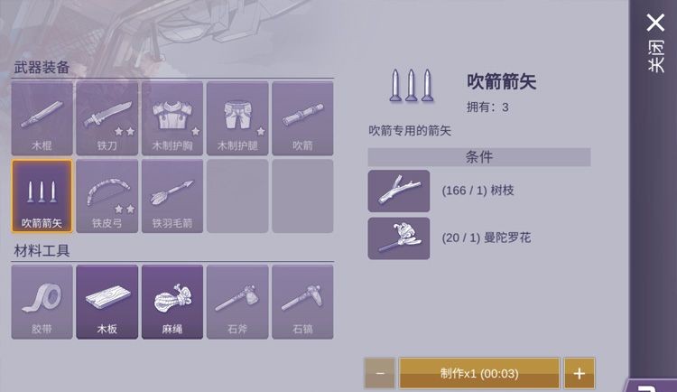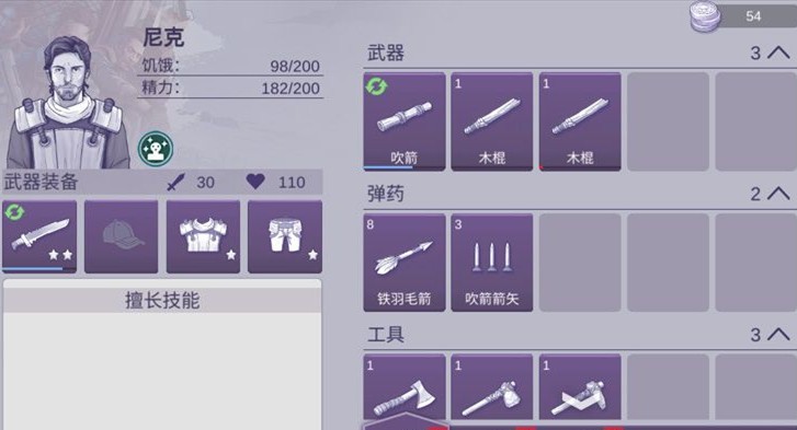 但是这里要补充说明的是,这款游戏并不是靠你日积月累的收集资源就能肝过去的,收集再多的木材也只能制作木棍,木棍的攻击力就只能+5,所以要想推动剧情的发展,还是的勇敢的进行一次又一次的挑战,在这个过程中修正自己的任务策略,提升自己的战斗机巧!