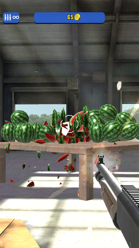 3、打完西瓜可以获取丰厚货币,货币可以用来购买枪支。