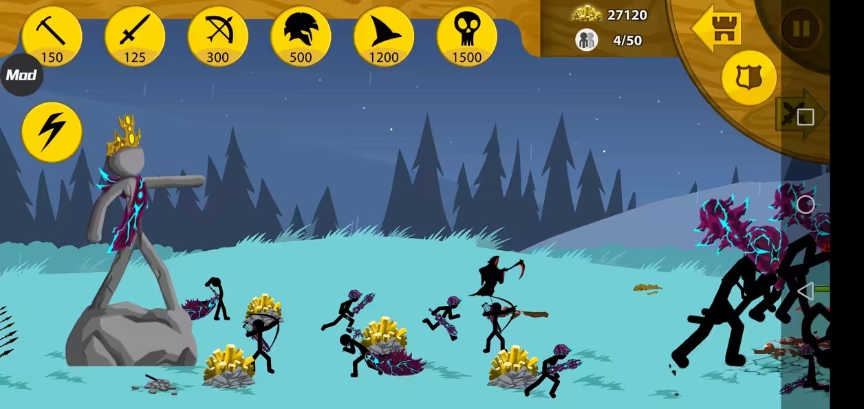 火柴人战争遗产内置功能菜单游戏是一款火柴人题材的生产士兵玩法的策略塔防游戏。游戏里玩家需要做的就是挖矿来生产熟悉的士兵,你可以学习不同的技术,就能生成不一样的火柴人,比如剑术、长矛、弓箭手以及法师等,你需要合理的生产火柴人来对战你的敌人,保卫自己的黄金矿和领土,击败所有的敌人,解锁全部的强大的兵种,还有巨大的巨人来帮助你去战斗。
