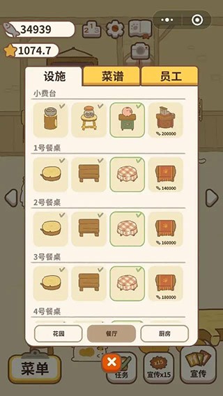 ●餐厅:多解锁菜谱和客人,有的客人用餐完毕后会掉落1-2颗星哦!