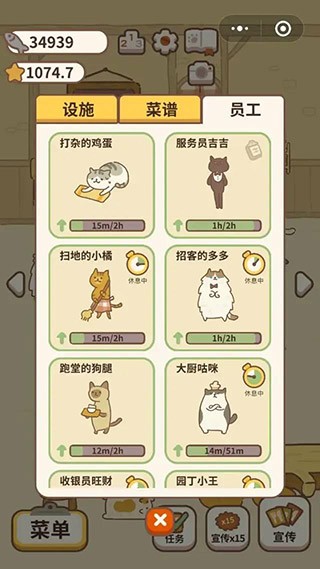 3、你可以收集各种奖励,获得小鱼干,来升级自己的餐厅,可以收纳更多的小动物。