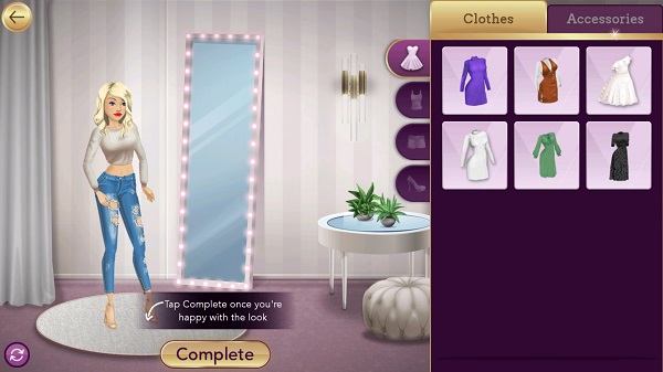 4、完成以上的人物形象设计,下面便可搭配穿衣风格,这里可以选择的服装类型非常多样,“Clothes”是服装选择窗口,“Accessories”是饰品选择窗口,通过时尚搭配,成为全场焦点。