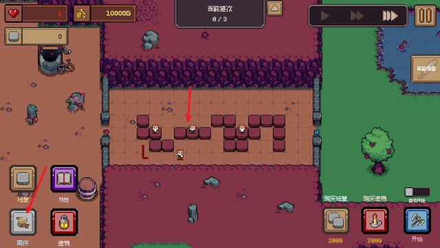 2、墙壁建好之后,我们可以放置伙伴来布置防御。