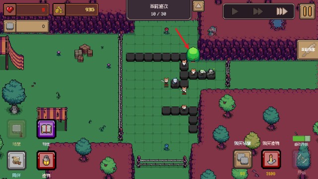 1、开始游戏后,我们首先需要建造墙壁来改变敌人的行进路线。