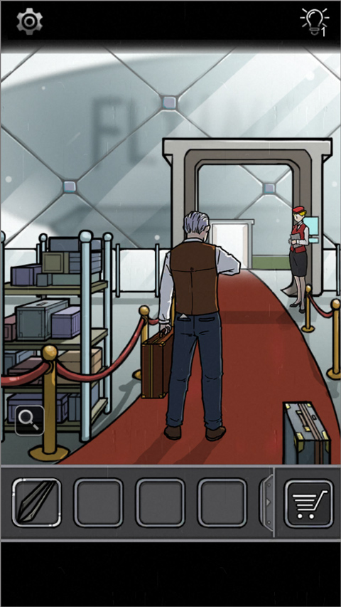 打开自己的行李箱,取出对应物品,与前面的男士对话,并用镊子取出他的通行证。