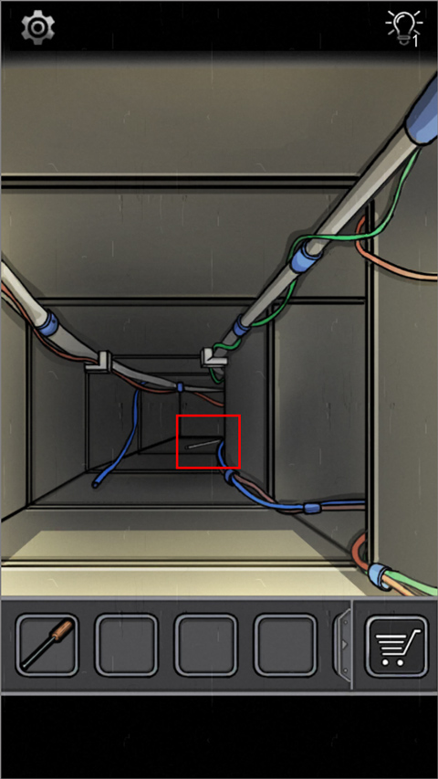 直行得到一根铁棍,右行看到转动的风扇,将铁棍放入风扇,螺丝刀拧螺丝,打开。