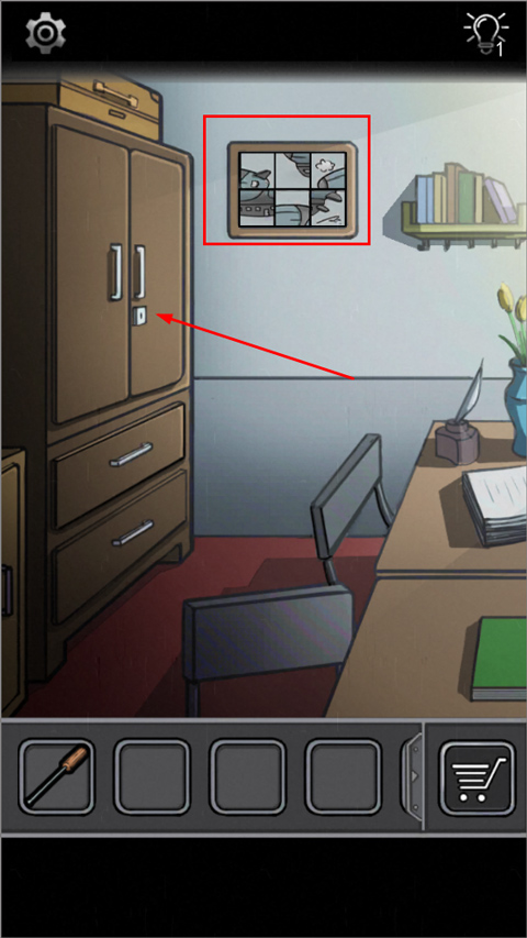 墙上拼图拼好得钥匙,打开橱子,拿出对应东西,换装。