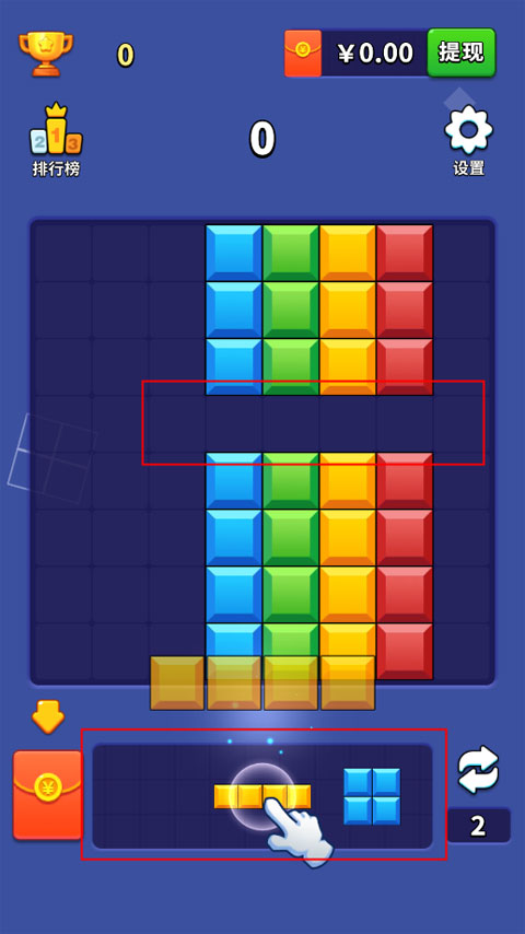将下方的俄罗斯方块放到指定的位置进行消除,将所有的俄罗斯方块全部消除以后就可以获取一定数量的红包。