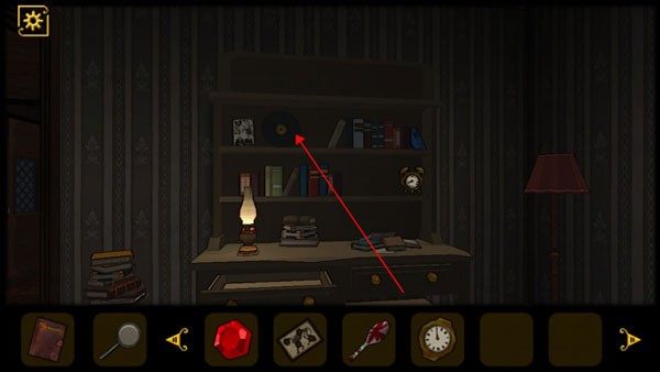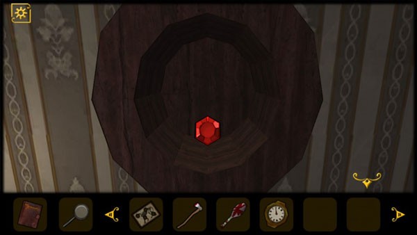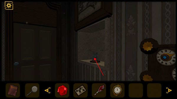 5、查看桌子抽屉,获得道具和查看日记,将红色机关石放入墙上的红色凹槽中,回头会发现进门处出现一只怪物,将门关上,注意门上的花纹