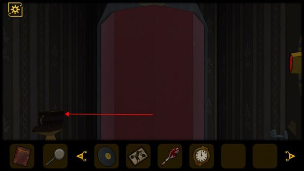 2、打开抽屉获得红色机关石头和查看报纸,注意钟表上红色指针指向的数字VIII