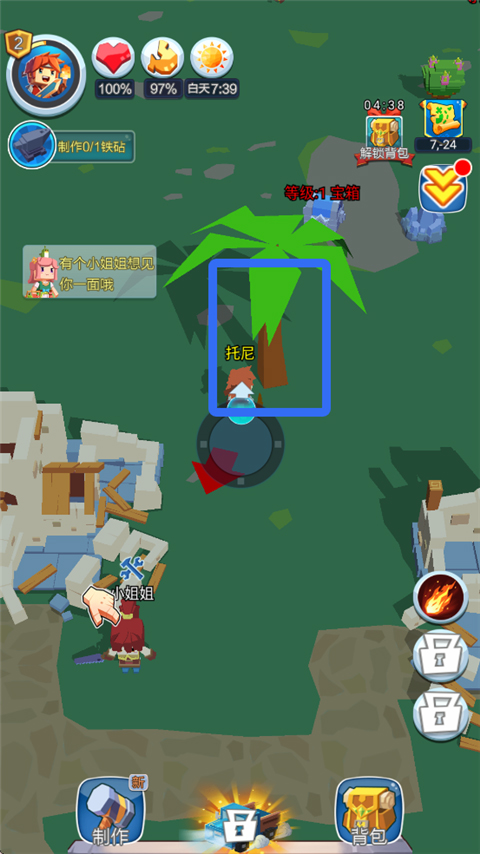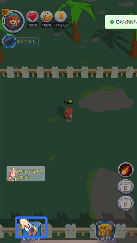 2、收集各种不同的资源,制作更多的强力武器道具。
