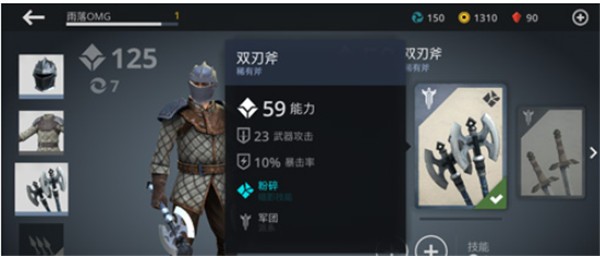 2、其实双刃斧也算是不错的武器了,至少它是精英级的级别,能力值59,攻击力23点,有10%的暴击,附带粉碎效果。对于前期的玩家来说,能获得这精英武器已经很不错了。