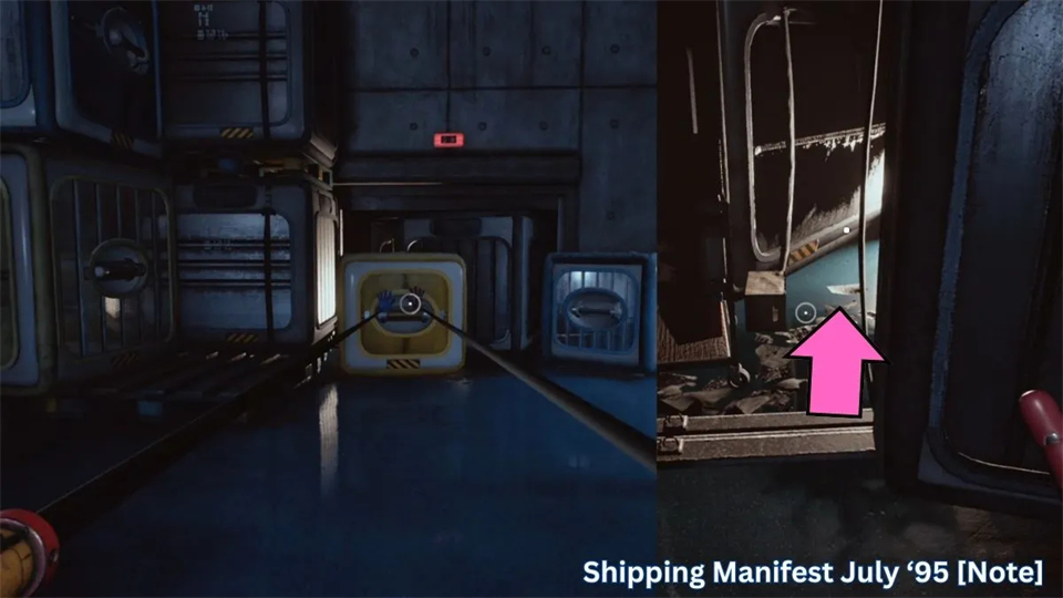 进入下一个房间后,你的新目标是找到出口。在此之前,先把左边挡门的箱子移开,然后从地上拿起“1995年7月的运输清单”笔记。