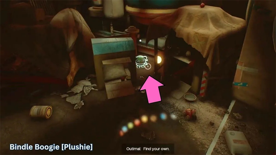 这里,别忘了拿到“Bindle Boogie”收藏品,这是我们在游戏开始时广告中看到的Wrongside外套毛绒玩具之一。