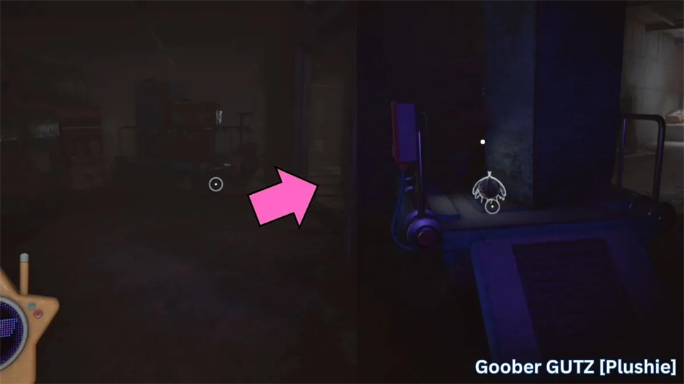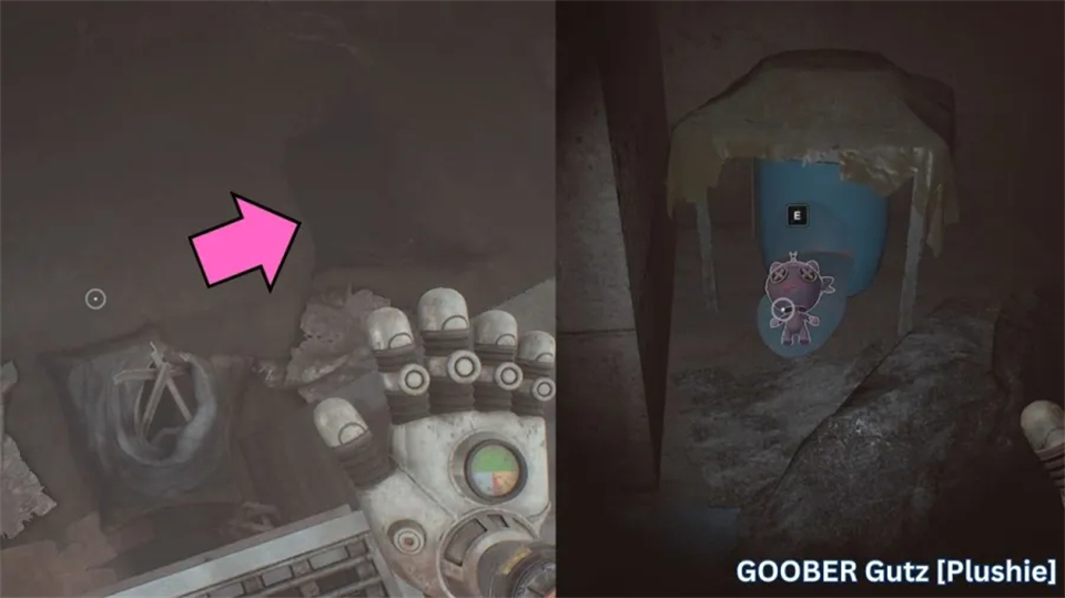 探索结束后,回到吉布雷特,沿着他右侧的洞穴下去。箭头指向左边和向上的通风口,但我们先往右走,因为我们想要那些酷炫的收藏品。绕过拐角,再向左走,直到你看到购物车上有一个小“Goober Gutz”毛绒玩具。拿起它,朝通风口走去,那里是真正的进展点。