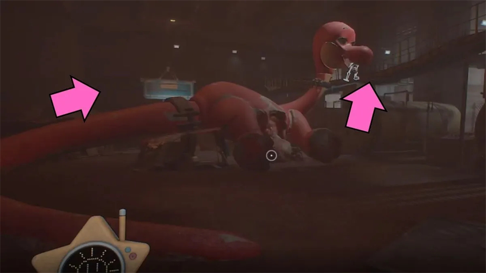 在下一个房间,转动阀门关闭火焰。确保站在第二个阀门的圆圈内,否则它不会被识别。一旦找到,做好心理准备,因为Huggy真的要回来了,他是在骗我们。当他跳到你所在的位置时,向左跑,穿过Huggy刚挖的洞,直接去电梯。