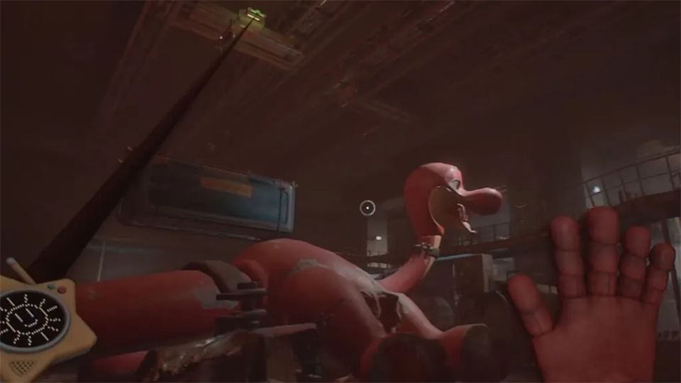 他会再次穿墙攻击你,但要继续移动,寻找弯曲的金属片,表明攻击将从那个区域发起。门一开,扫描扫描红手,但你的整个抓取包都会被Huggy抢走。是时候再次依靠我们自己的双手了。