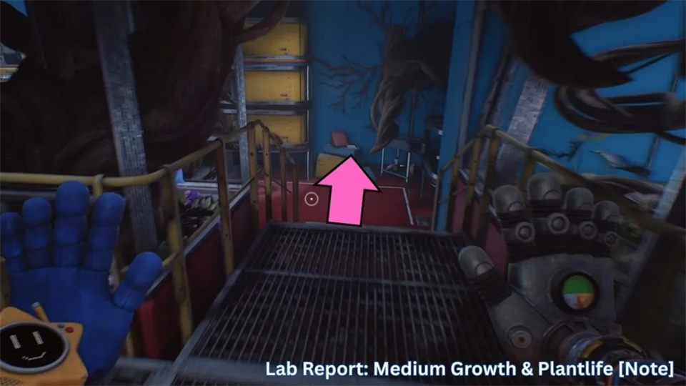 在进入生物多样性实验室的重要部分之前,我们想先探索这部分,以便获得更多收藏品。首先,左边楼梯下去你会看到一张“实验室报告:中等生长与植物”的说明。这个很明显,但第二个更复杂一些: