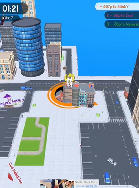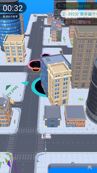 在小黑洞时期最大的积分来源就是人,人最多的位置在周边的街道,如下图所示游戏开始后一般的玩家会在地图的中央去吐东西,虽然地图的中部小人也不少,但是竞争太过激烈,你要做的是一直去地图的边缘地带,边缘地带有很多的人和小的东西,快速吞噬后会变大就可以回中心地带了。下面是小编为大家带来的黑洞大作战攻略,大家可以用来作为参考。