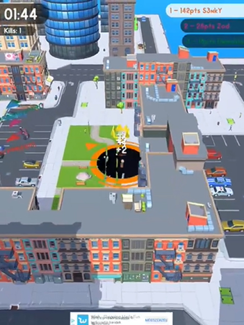 游戏的玩法也非常的简单,只需要通过移动这个黑洞以吞噬这个马路上的任意东西来增加自己的大小,但另外切莫被其他黑洞吞噬哦。