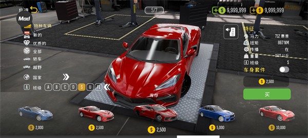 1、打开手动挡停车场2游戏后,可先利用无限金币自由购买心仪的跑车。