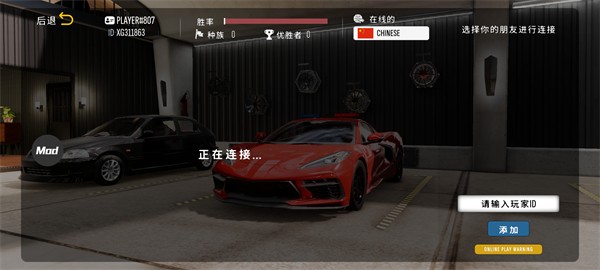 6、在多人模式界面输入其他玩家的ID即可添加好友,进入游戏后可与好友一同游玩,并支持后续的车辆交换与语音聊天互动。