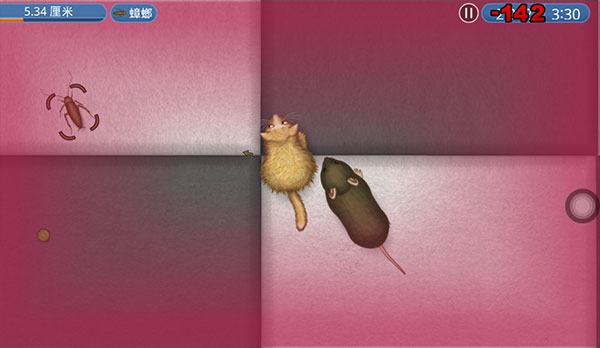 4、轻触屏幕,猫就会移动到啊哪个位置,吃比你小的东西,蟑螂、豌豆。