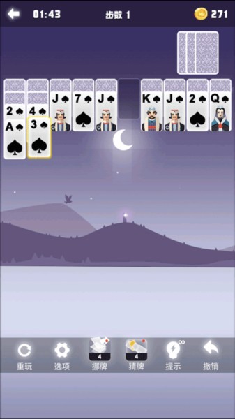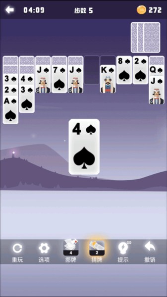 6、你也可以借助“提示”、“挪牌”、“猜牌”或者“撤销”等辅助功能,来帮助自己顺利通过当前的关卡!