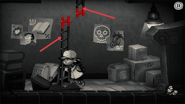 1.场景中出现带红色部件的梯子,操控角色靠近梯子,这是场景中的攀爬工具