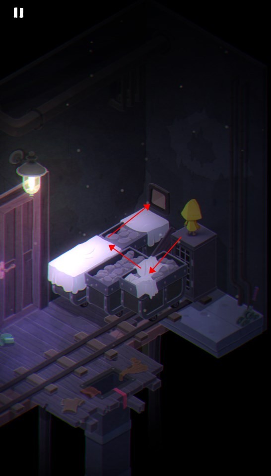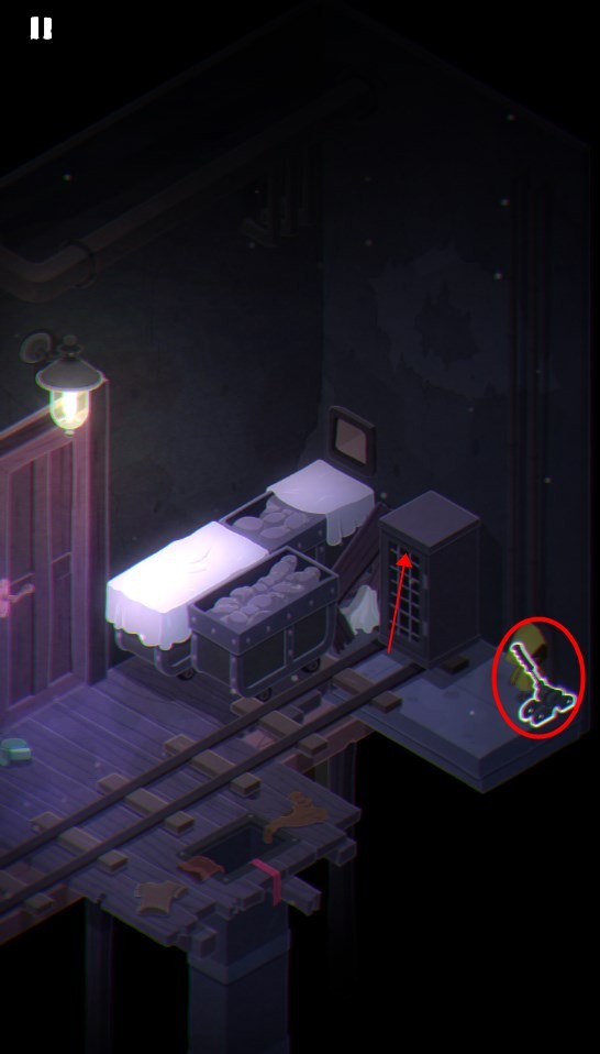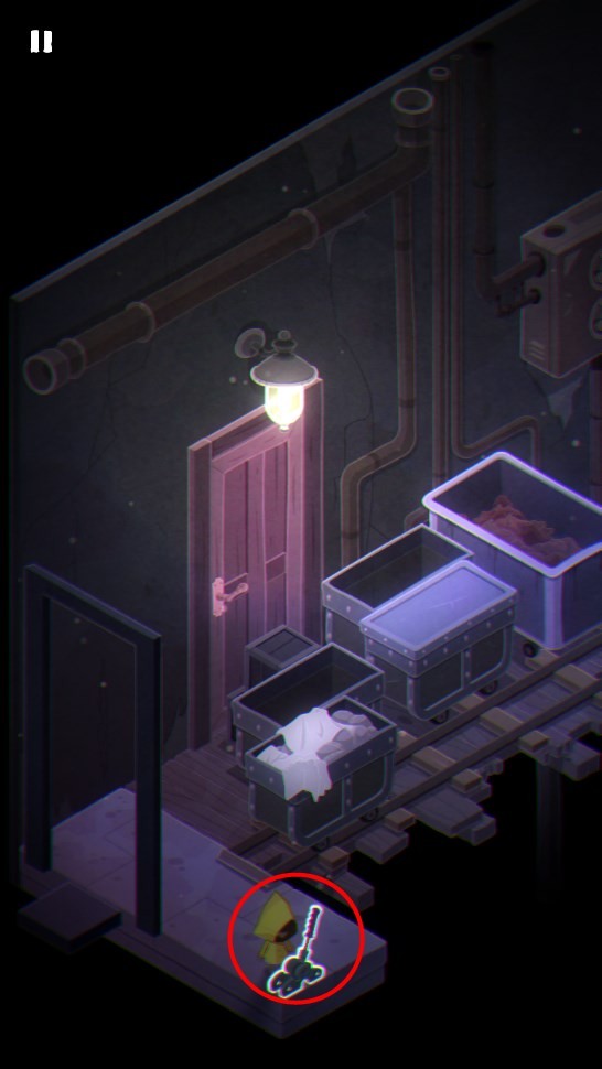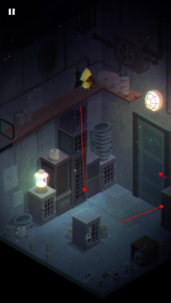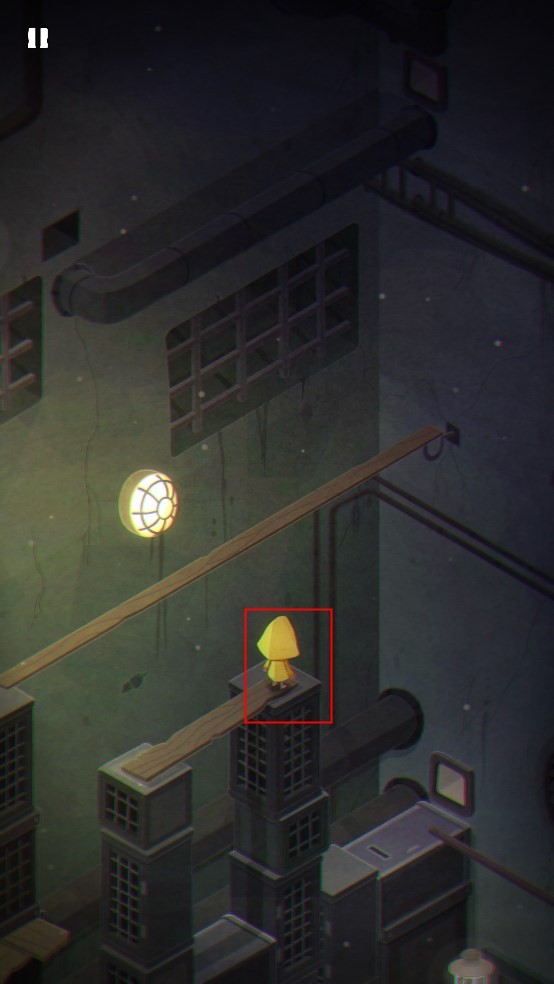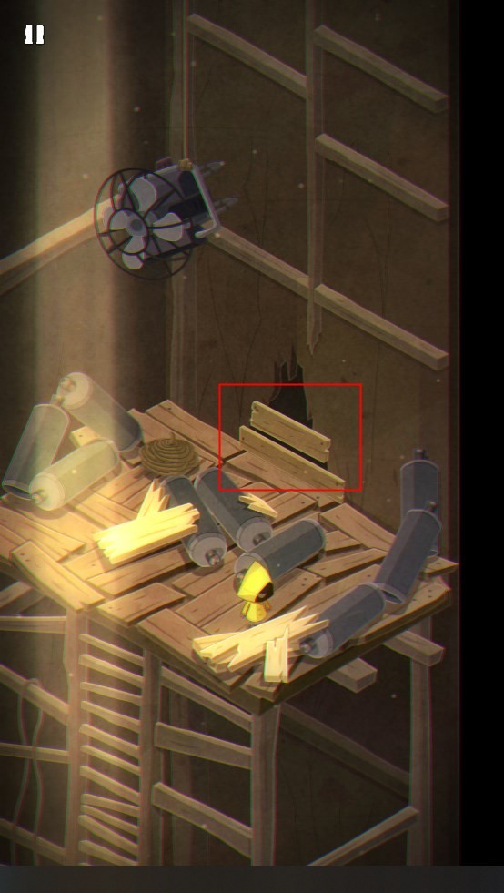 6、继续原路爬到拿工具的地方,沿着升降工具往下爬,穿过门来到下一个场景