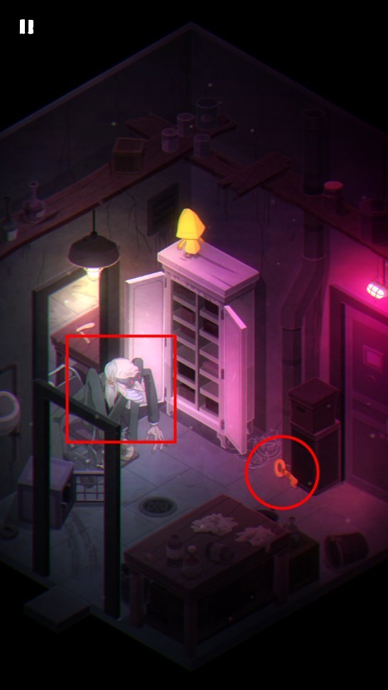 2、将柜子的另一边门打开,爬到上面来将装有钥匙的罐子推下来摔坏,拿到里面的钥匙,此时会有怪物出来,记得等怪物退出后再下来
