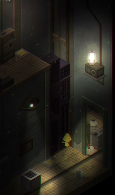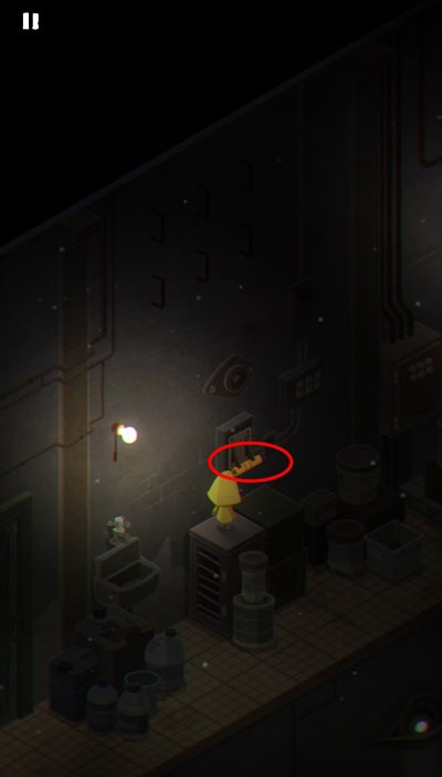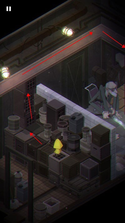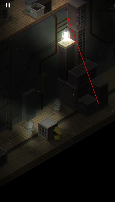 1、来到第三关,注意不要被灯光打到,从这里往上爬