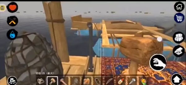 3、木筏不仅是船支,还是你的生存基地,不断扩大,建造海洋上的豪宅。