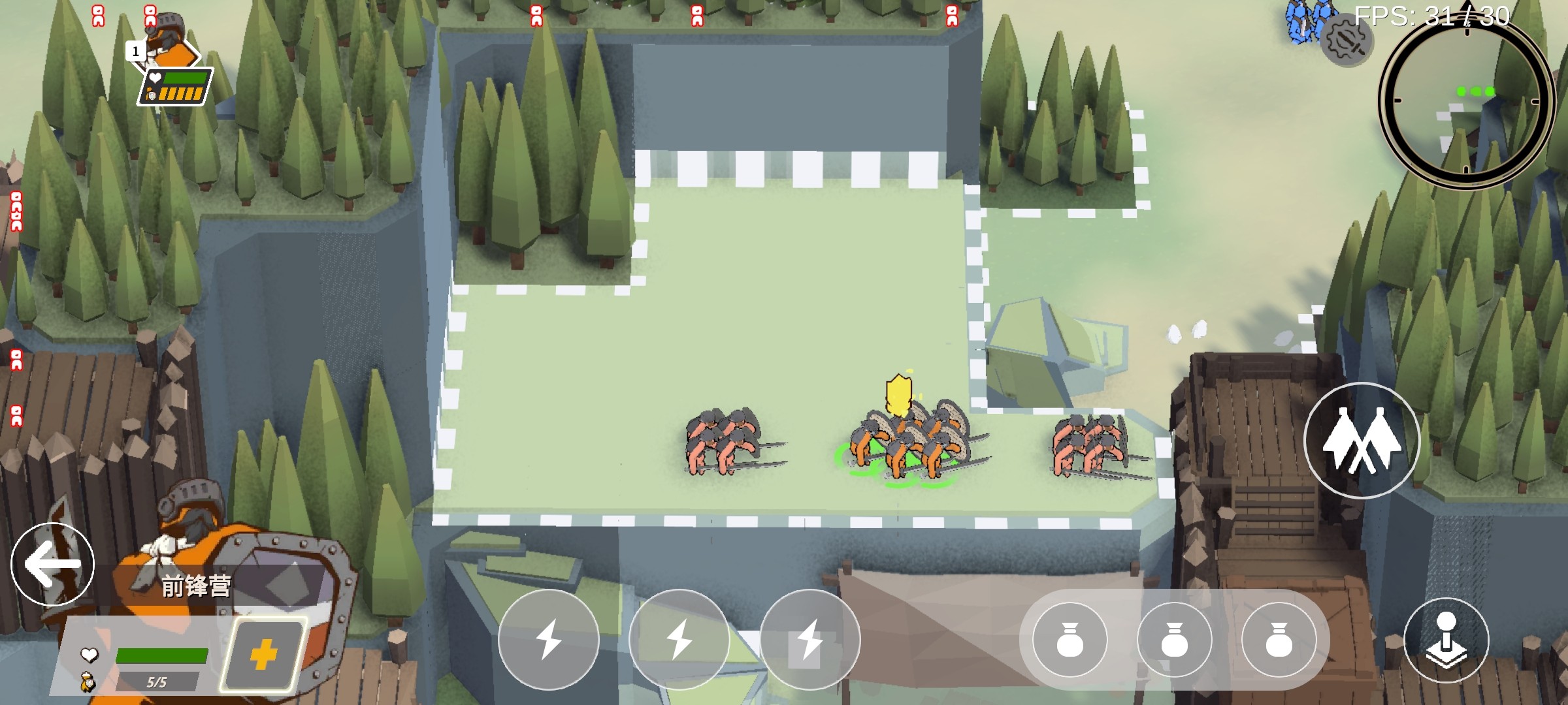 3、再次点击橙色前锋营军队,下方会有技能选项。