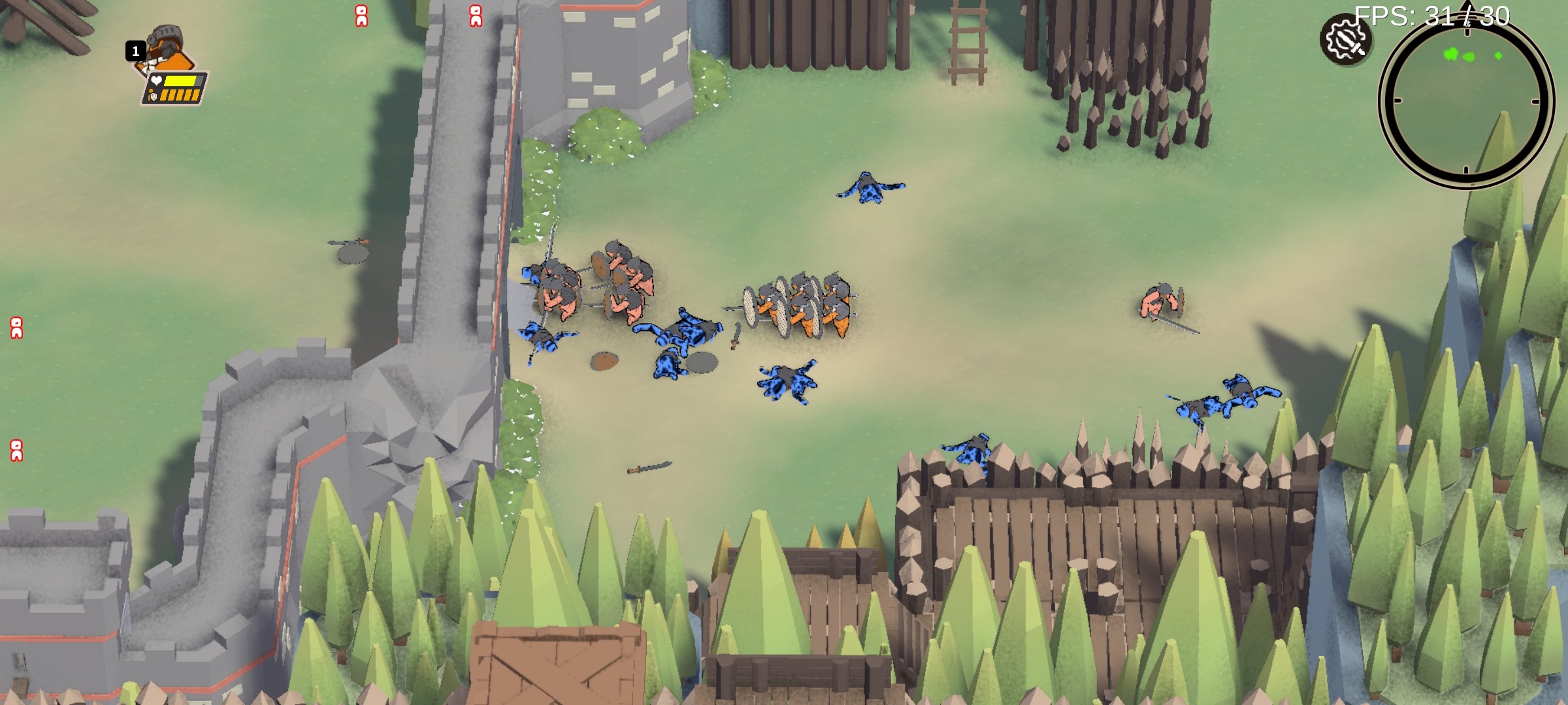 7、如果后面解锁了弓箭手,和枪兵得话尽量还是先不要用来打人机,弓箭手的技能对新人来说不好操作,而枪兵的话敌人一般碰到枪兵就会躲着你,不敢上来打,会托慢游戏进度。