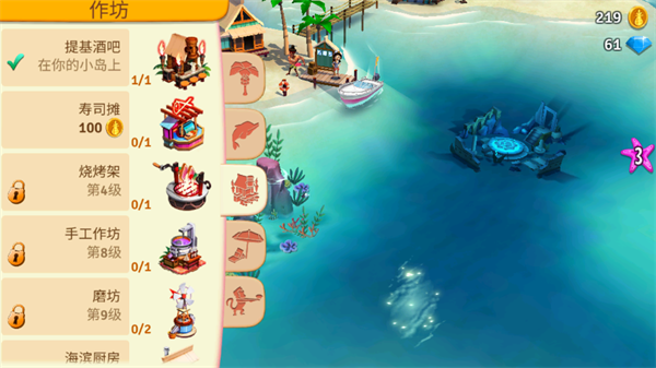 随着等级的提升,玩家别忘了加入更多的建筑和设置,随着小岛的生意越来越高,人气越来越高,这也意味着玩家可以做的事情也越来越多,小岛的经营也会越来越忙碌,这就是走上繁荣小岛的第一步啦!