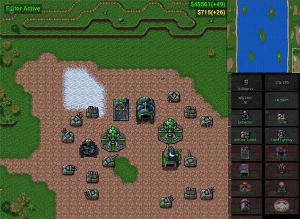 游戏最重要的是资金,我们现在只有少的可怜的资金,怎么办呢?当然是找一个黑漆漆的大坑,然后让建造车在上面建资金提取器,钱就开始源源而来了,可升级,建议初期就升。