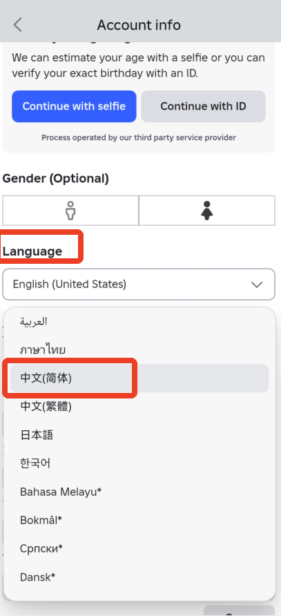 4、往下滑找到【Language】点击,选择中文(简体)就OK了。