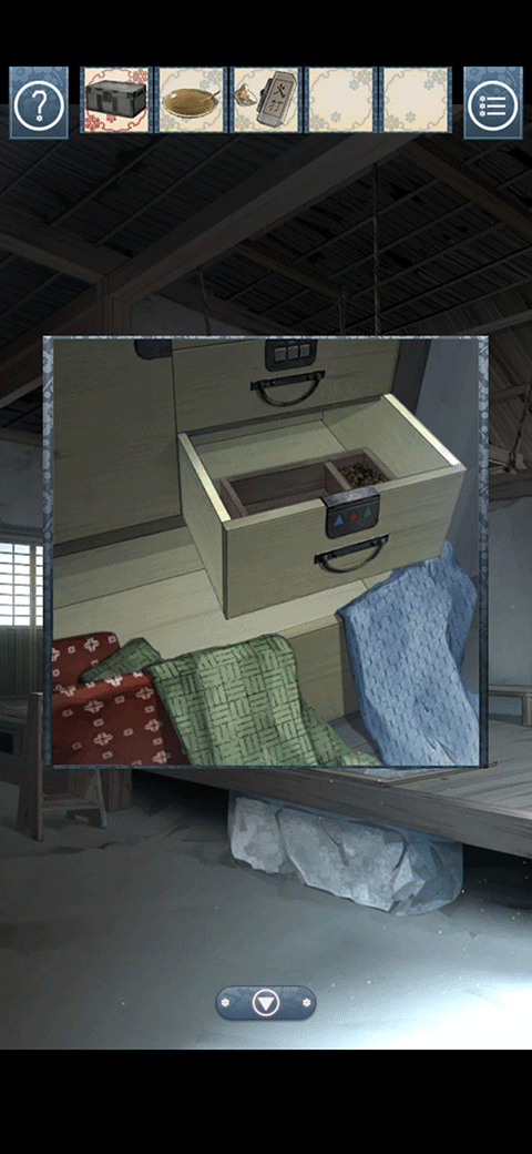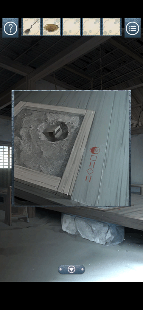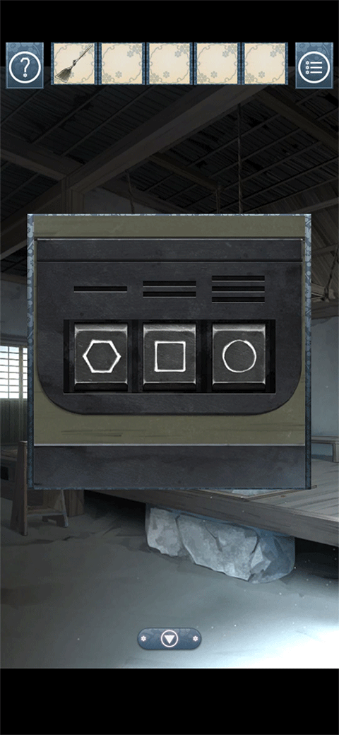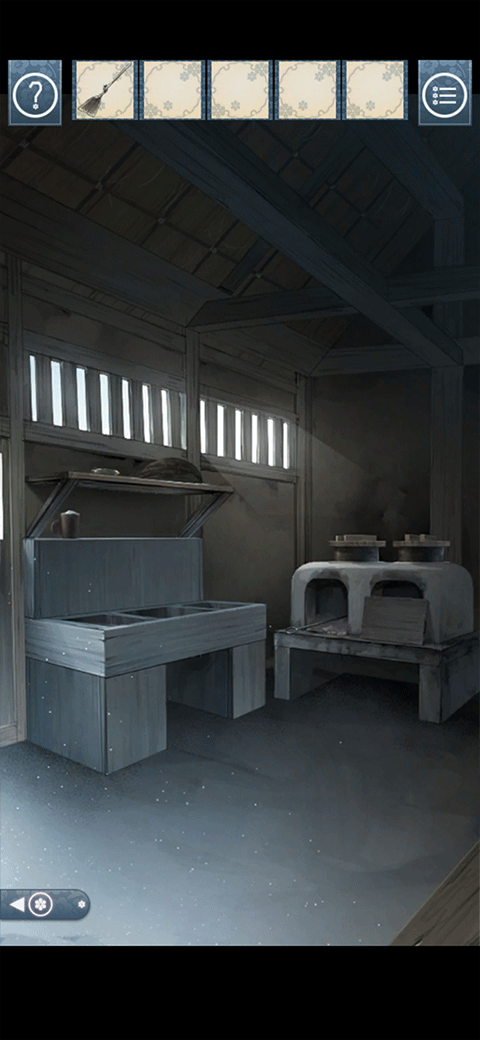 先来到厨房把架子上的盐和灶台上的米装好,然后来到井边装上水,最后来到有一幅画的房间装上味增,不要着急回去,再去看看游戏最开始的地方,发现三个果实后面有图案,点进去以后记下来,然后回到拿衣服的房间