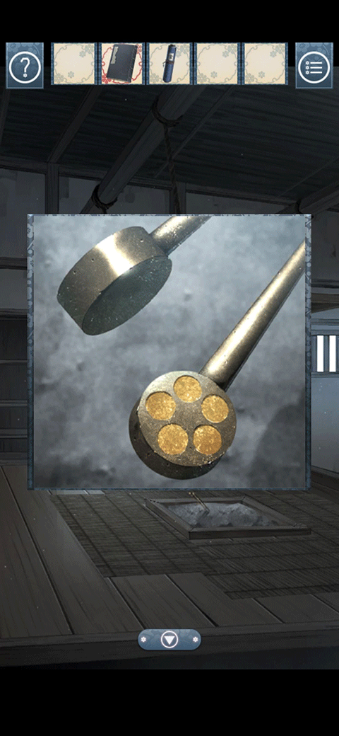 剧情ing,这次是男主要努力了,首先无情的拿走山神的刀和左边柜子上的书,然后根据门上的线索和中间台子的线索得到五位数密码,从门上出口走到中间,就是从左上到左下到右下到右上到中间,根据中间台子四角以及中间的数字提示,得到密码,三一四二五,打开柜子