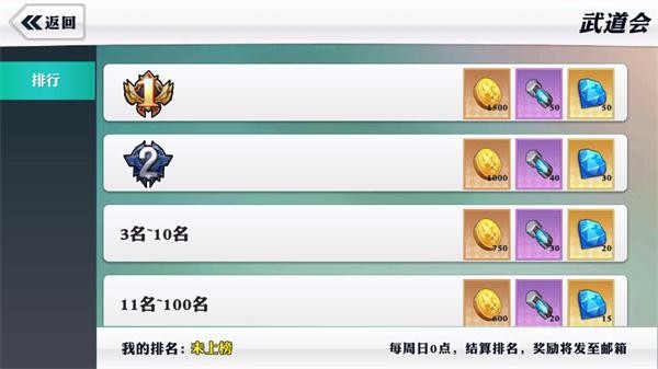 值得一提的是每一期的武道会有“试玩”英雄,可以给大家进行免费选择,来体验战斗。每周的战绩会在周日的0点,结算奖励后,通过邮件发放给玩家。