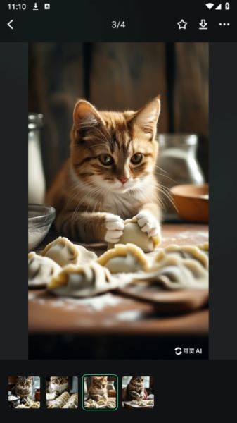 1、用户直接在AI图片创意描述里输入提示词,比如:一只猫咪在厨房里包饺子。