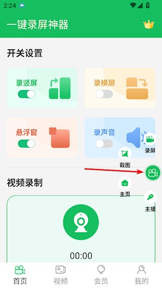 1、打开一键录屏神器APP,点击悬浮窗进行开启