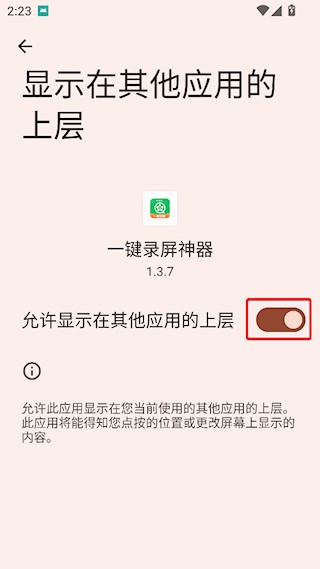 2、跳转到设置界面,开启允许显示在其他应用上层