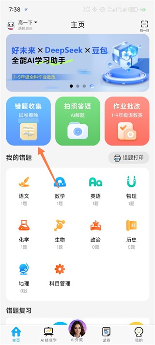 4、也是一样拍照上传系统就会扫描,随后就会添加到我的错题板块【错了的题目下次可以好好看看】