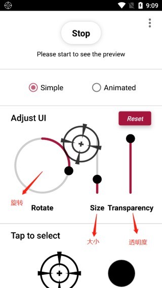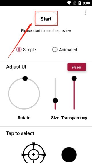 3、在tap to select可更换准星的外观以及颜色