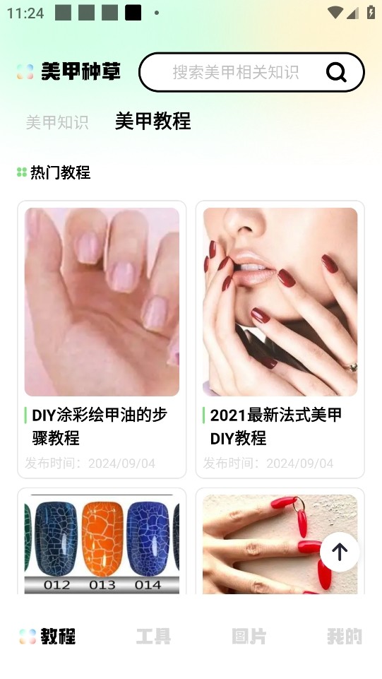 1、打开美甲设计手机版,在主界面通过搜索或浏览感兴趣的美甲相关知识。