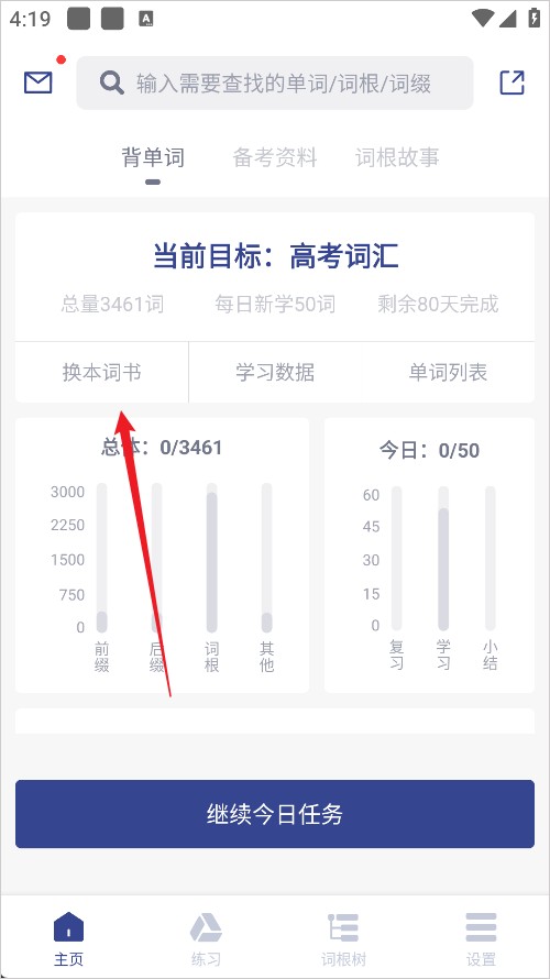 3、词汇本更换完成后就可以修改计划了
