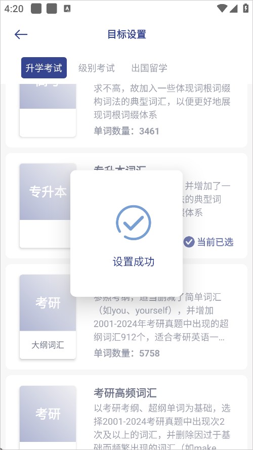 2、软件涵盖多种考试选择,用户根据需求来设置使用。