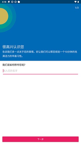 1、下载安装后打开软件,填入自己姓名点击下一步。